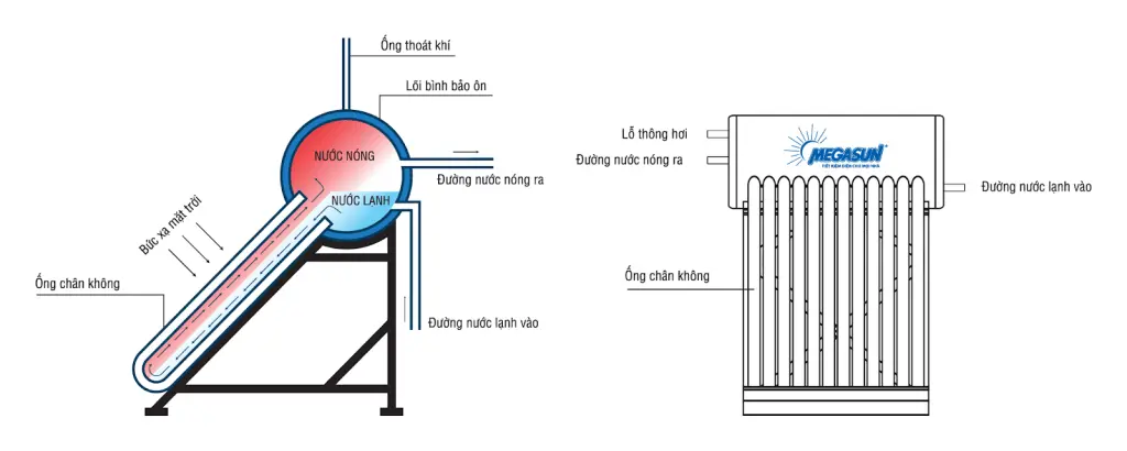 e. Chu trình tuần hoàn: Khi nước nóng được sử dụng, nước lạnh sẽ tự động chảy vào các ống chân không để tiếp tục quá trình làm nóng, tạo thành một chu trình tuần hoàn liên tục.