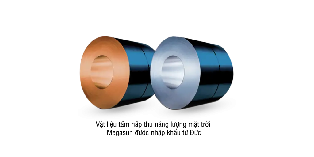 Lớp hấp thụ nhiệt của tâm phẳng thu nhiệt Megasun được nhập khẩu từ Đức, có lớp mạ blue titanium chọn lọc và được sản xuất tại Đức, trên dây chuyền công nghệ hiện đại hàng đầu thế giới – giúp nâng cao hiệu suất hấp thụ trên 95% ánh sáng mặt trời, phản xạ dưới 5%.
