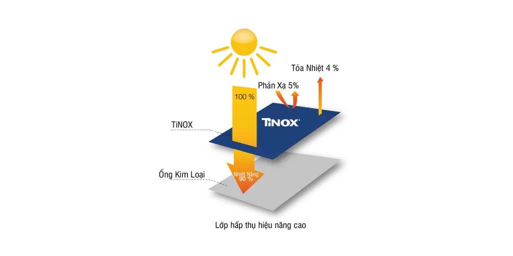 - Hiệu suất hấp thụ cao 96% ánh sáng mặt trời